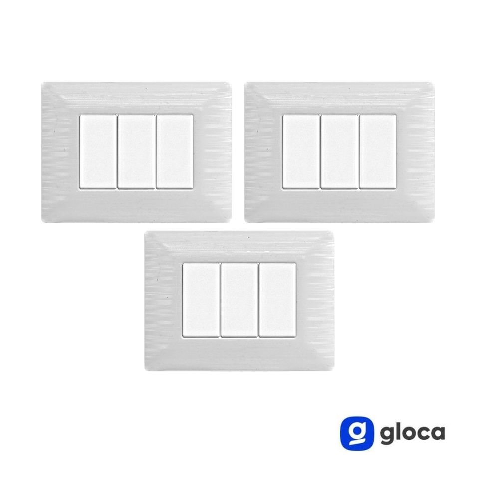 สวิตช์ติดผนังโกลก้า 3 ช่อง พลาสติก 3 สวิตช์ ติดตั้งง่ายสำหรับใช้ในบ้าน