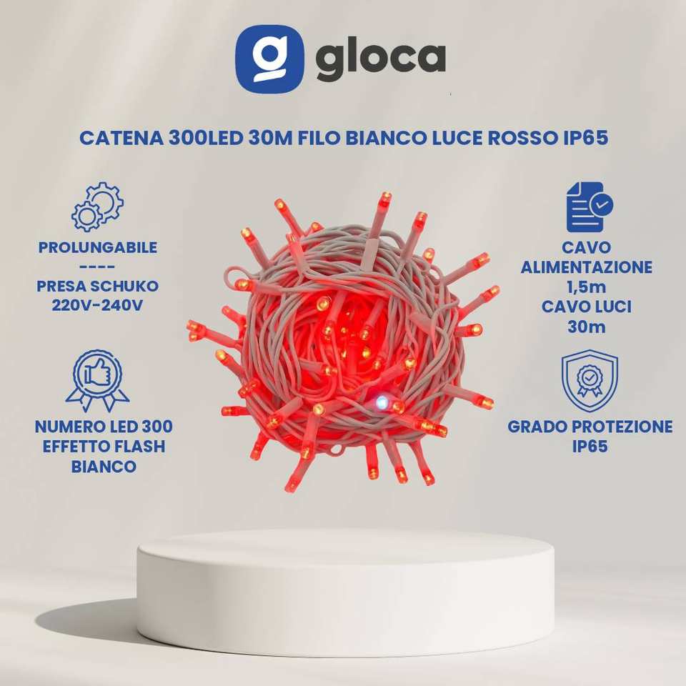 โกลก้า 300Led ไฟประดับสายไฟ 30M สายสีขาว ไฟสีแดง IP65 ตกแต่งภายในและภายนอกอาคาร