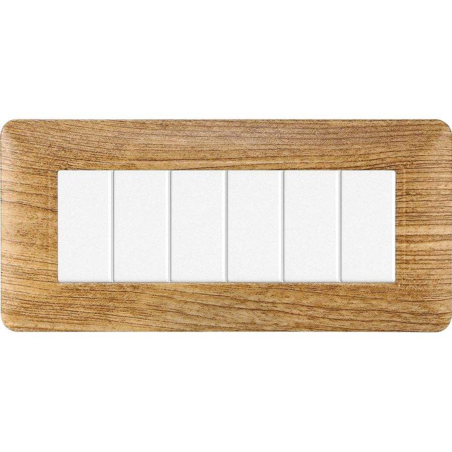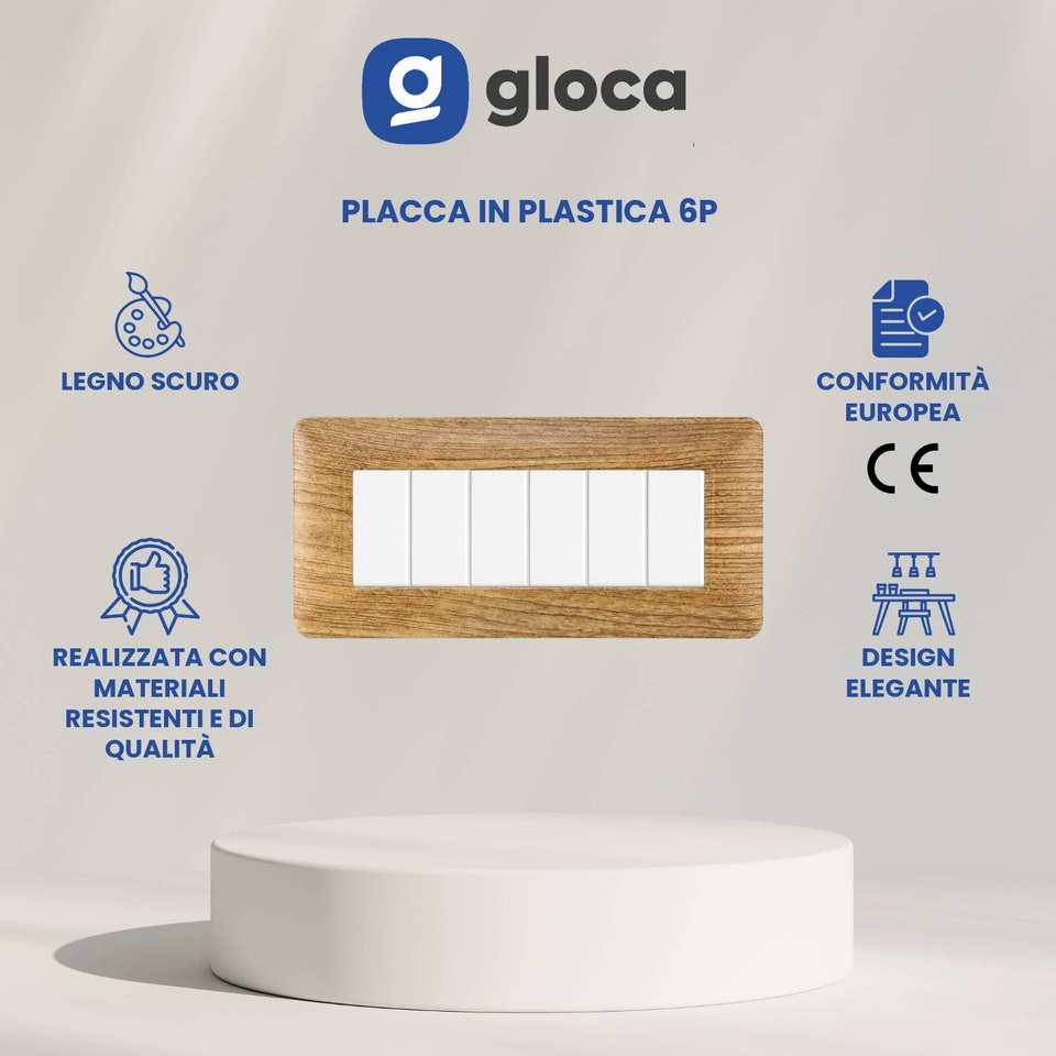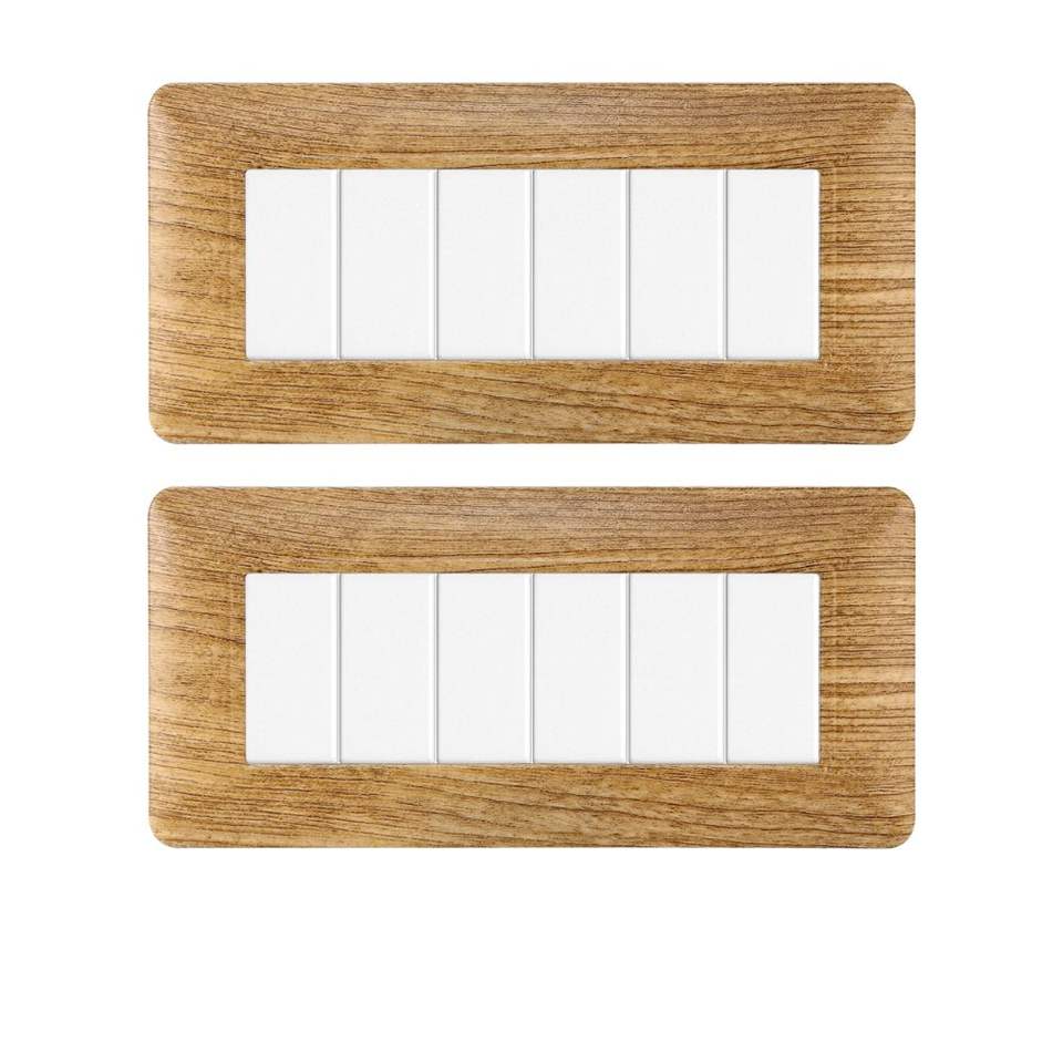 Gloca 6-Gang Wall Switch Panel Plastic Dark Wood Frame 6 Switches Durable Design for Home Use
