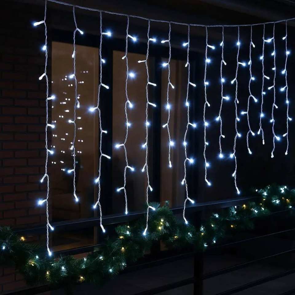 โกลก้า ผ้าม่านไฟ LED 200 ดวง 3 ม. x 1 ม. สายไฟสีขาว แสงสีขาว IP65 ไฟตกแต่ง LED