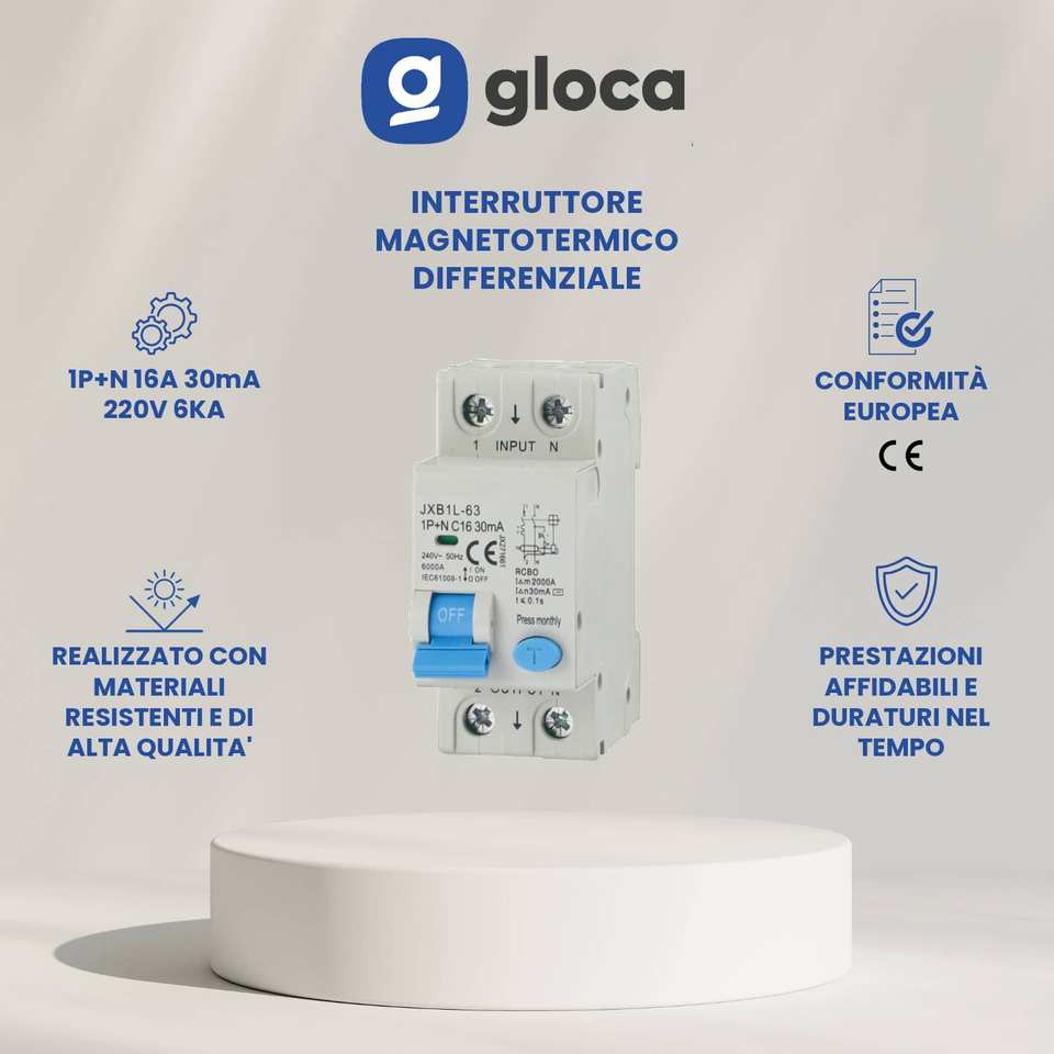 Gloca Differential เซอร์กิตเบรกเกอร์2P 16A 30mA 250V 4.5KA DIN MOUNT C16