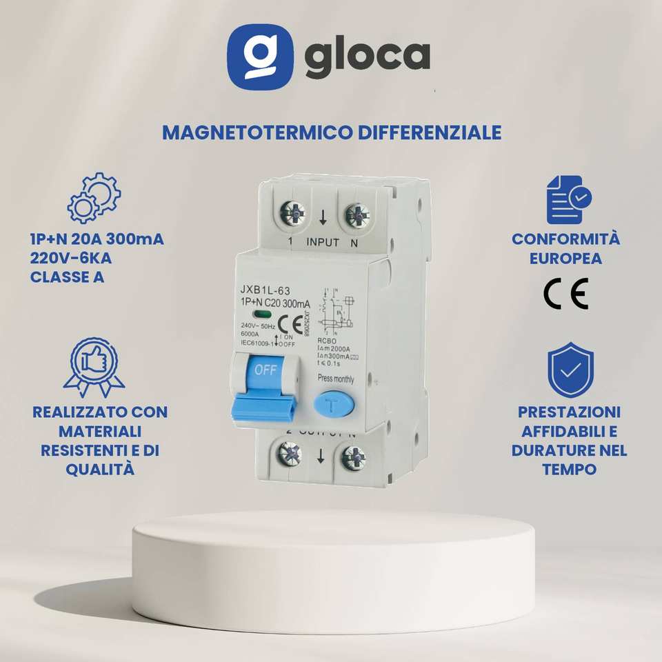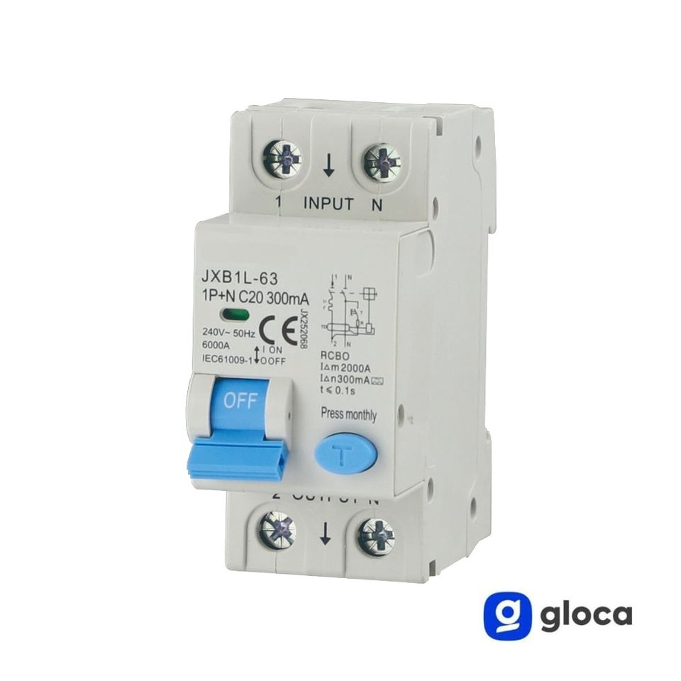 Gloca RCBO เบรกเกอร์1P + N 20A 300mA 220V C โค้ง6KA การติดตั้งแบบแยกส่วน