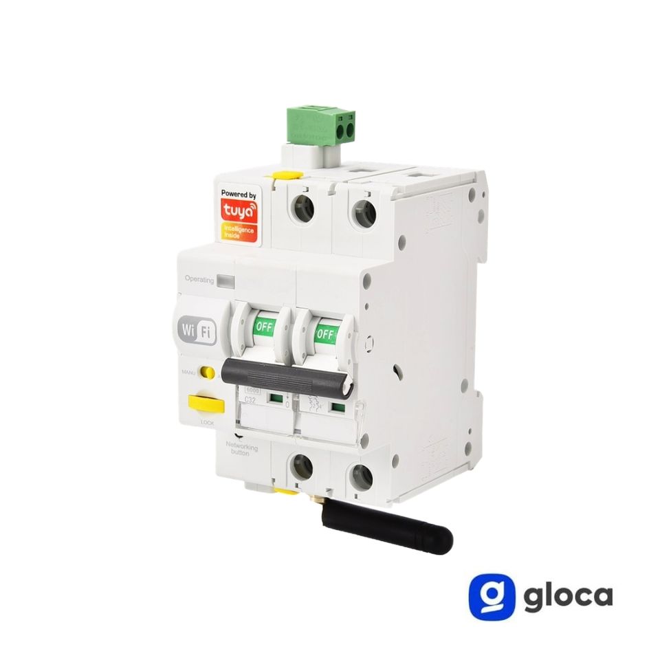 โกลก้า สมาร์ท ไวไฟ เซอร์กิตเบรกเกอร์ 2P 32A 250V ควบคุมผ่านแอป Tuya พร้อมฟังก์ชั่นรีเซ็ตอัตโนมัติ ใช้งานได้ทั่วโลก