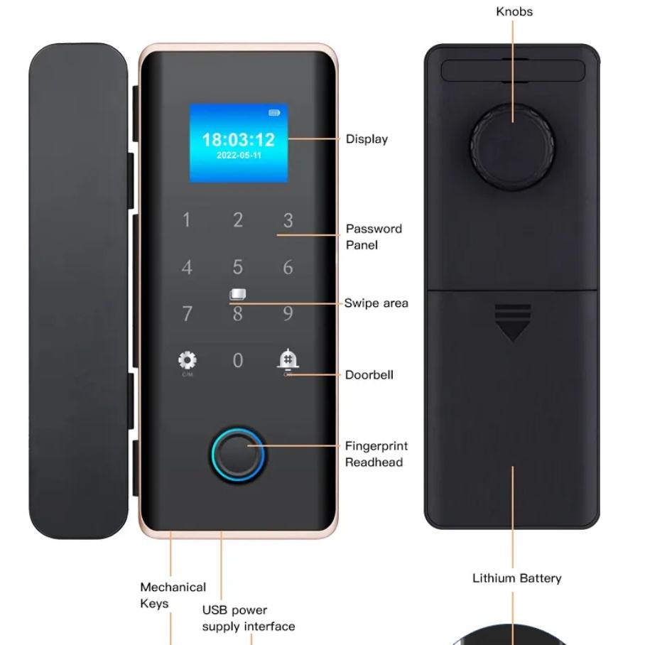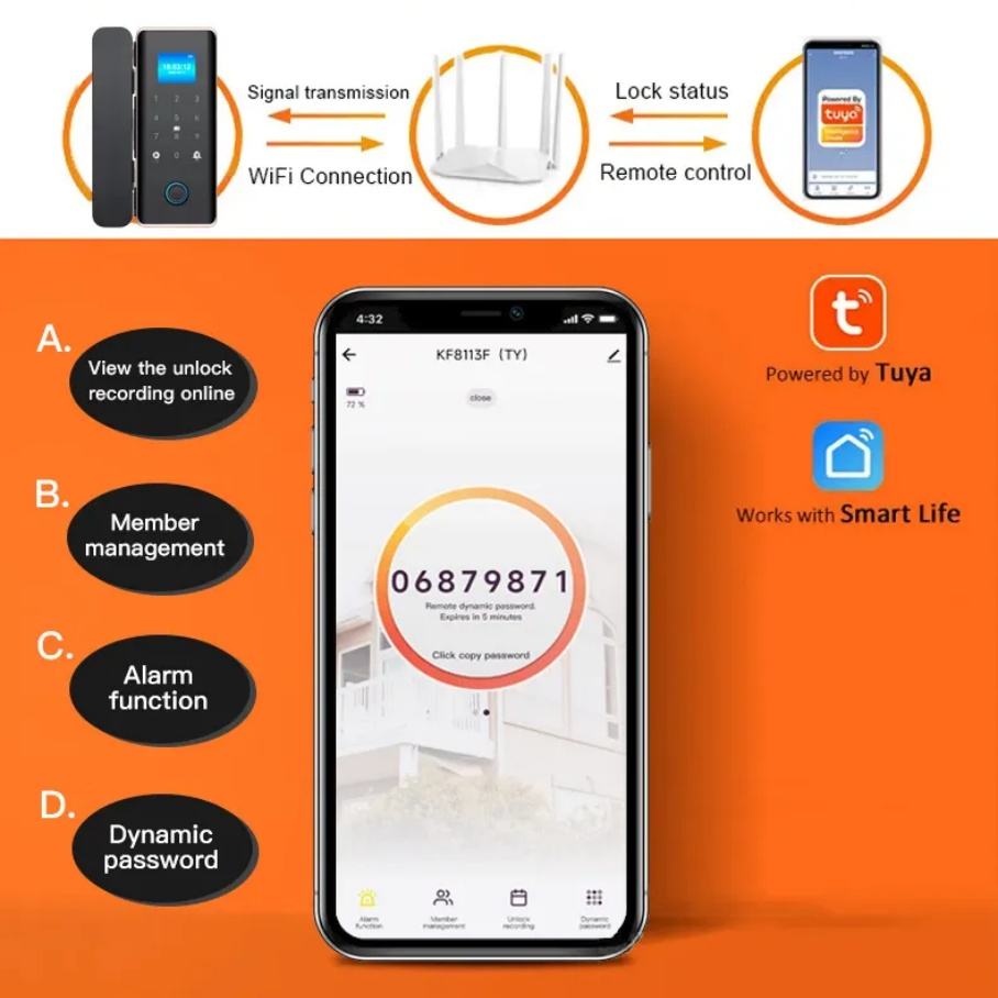 กุญแจล็อคประตูอลูมิเนียมกระจก Glomarket ควบคุมผ่าน WiFi ด้วยแอป Tuya รองรับการ์ด ดิจิตอล ไบโอเมตริกซ์ สแกนลายนิ้วมือ สำหรับสำนักงาน