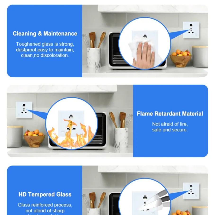 Material:Tempered Glass, tempered glass+PC flame retardant