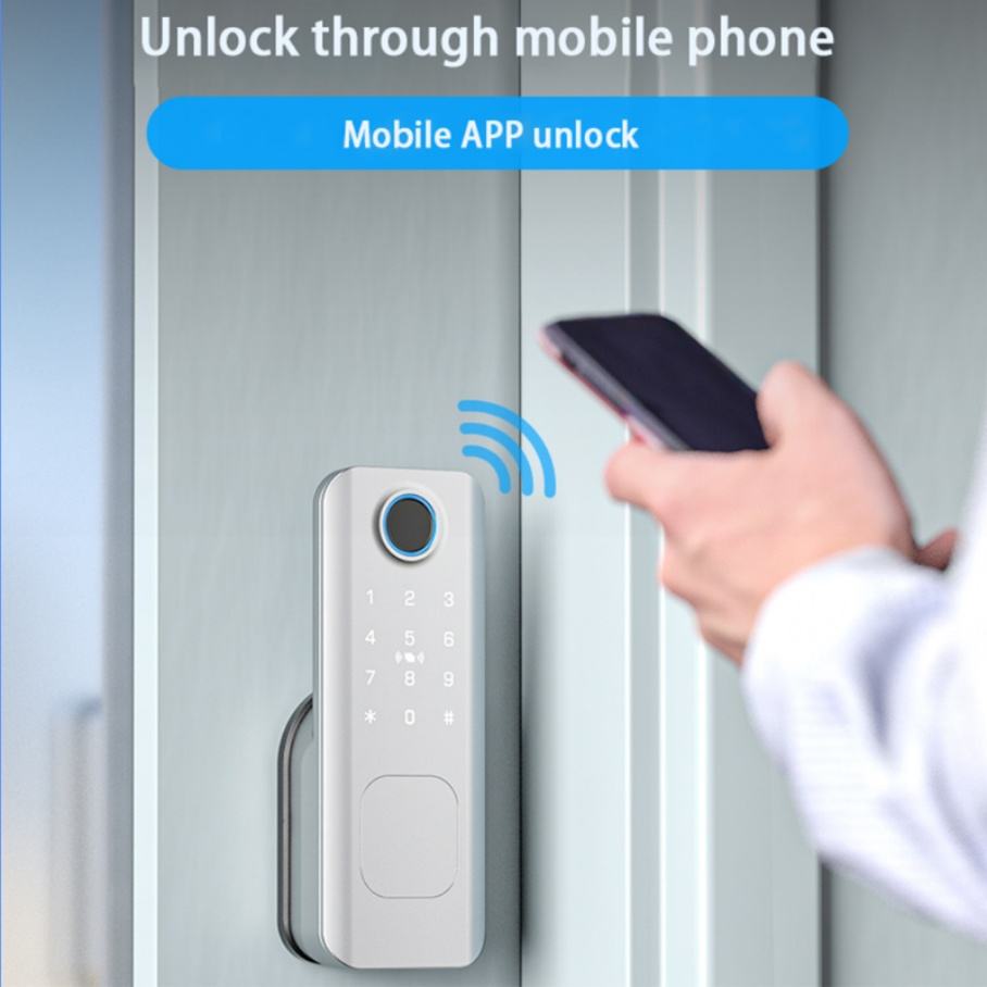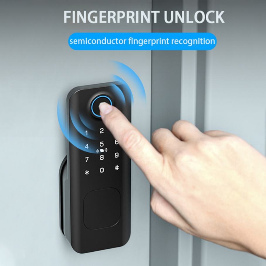 กลอนประตูอัจฉริยะ Glomarket สำหรับประตูรั้วและประตูหน้าบ้าน วัสดุอลูมิเนียมอัลลอยด์ พร้อมระบบล็อคด้วยรหัสผ่าน ลายนิ้วมือ และกุญแจดิจิตอล