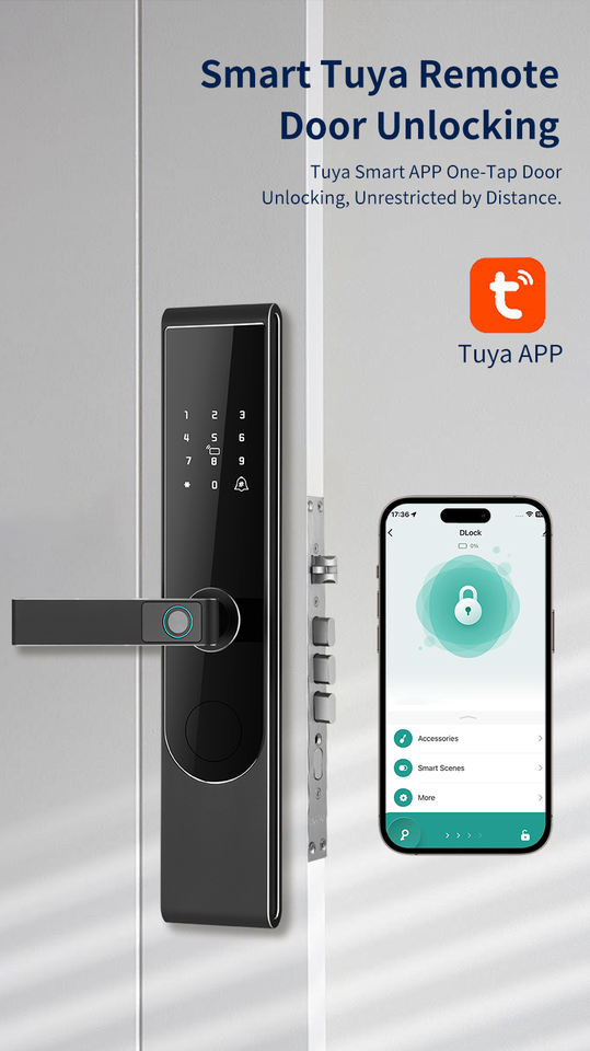 Unlock way:Fingerprint + Password + Card + Key+App Control