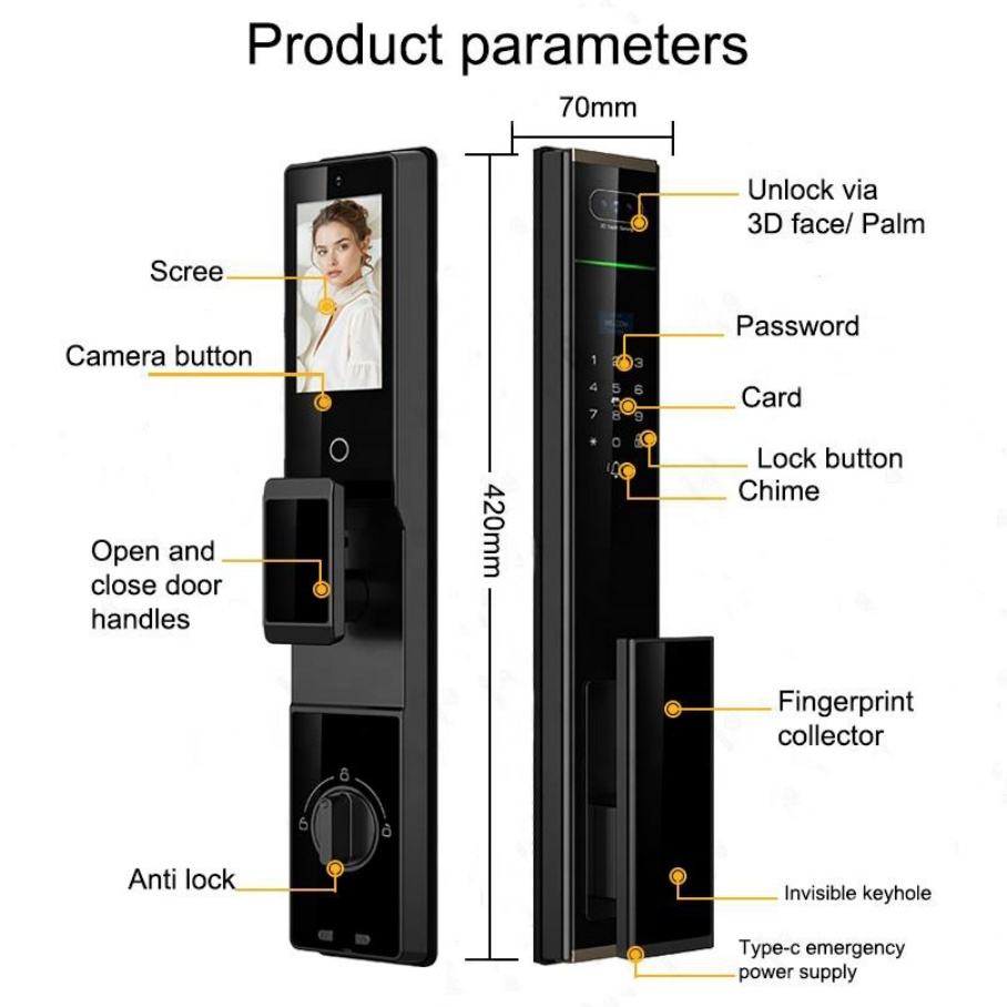Unlock way:Face+Fingerprint +Palmprint+ Password + Card + Key+App