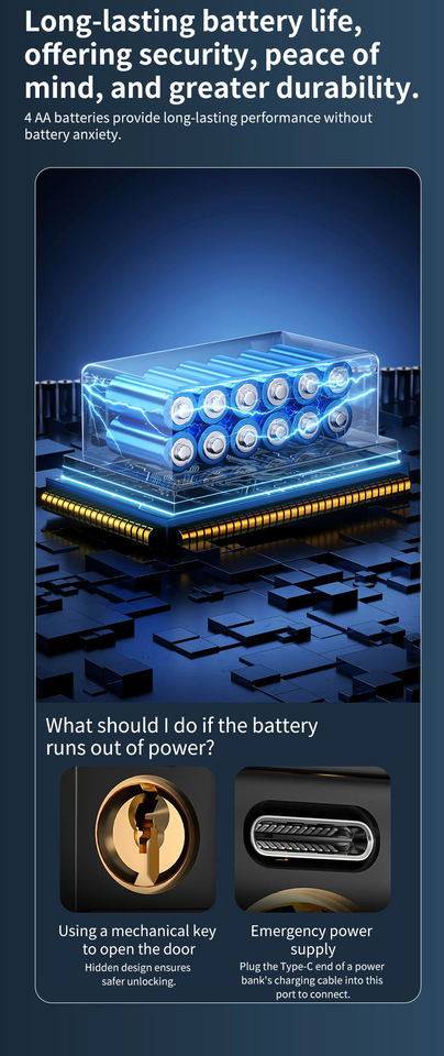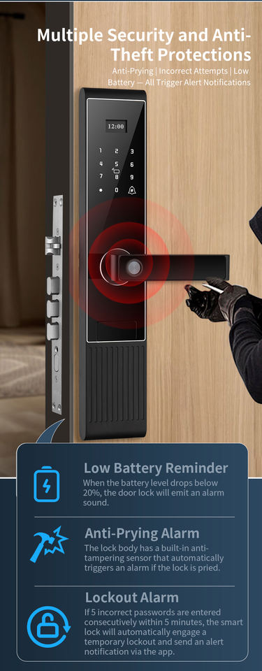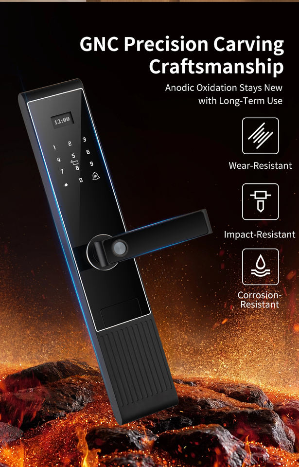 Unlock way:App Control +Fingerprint + Password + Card + Key