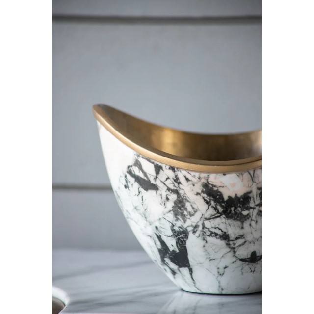 Gloriane ชุดชามตกแต่งอลูมิเนียมรูปทรงเรือสไตล์หินอ่อนสีทองตกแต่งบ้านสำเนียงห้องนั่งเล่นประดับโต๊ะศิลปะกลางโต๊ะ