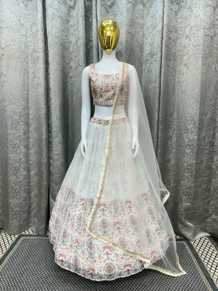 เชิดชูคอลเลกชันประจำชาติของคุณด้วยผ้าจอร์เจียเทียมนี้การออกแบบที่มีสีสันชุด lehenga choli เจ้าสาวกับกระป๋องและผ้าใบ