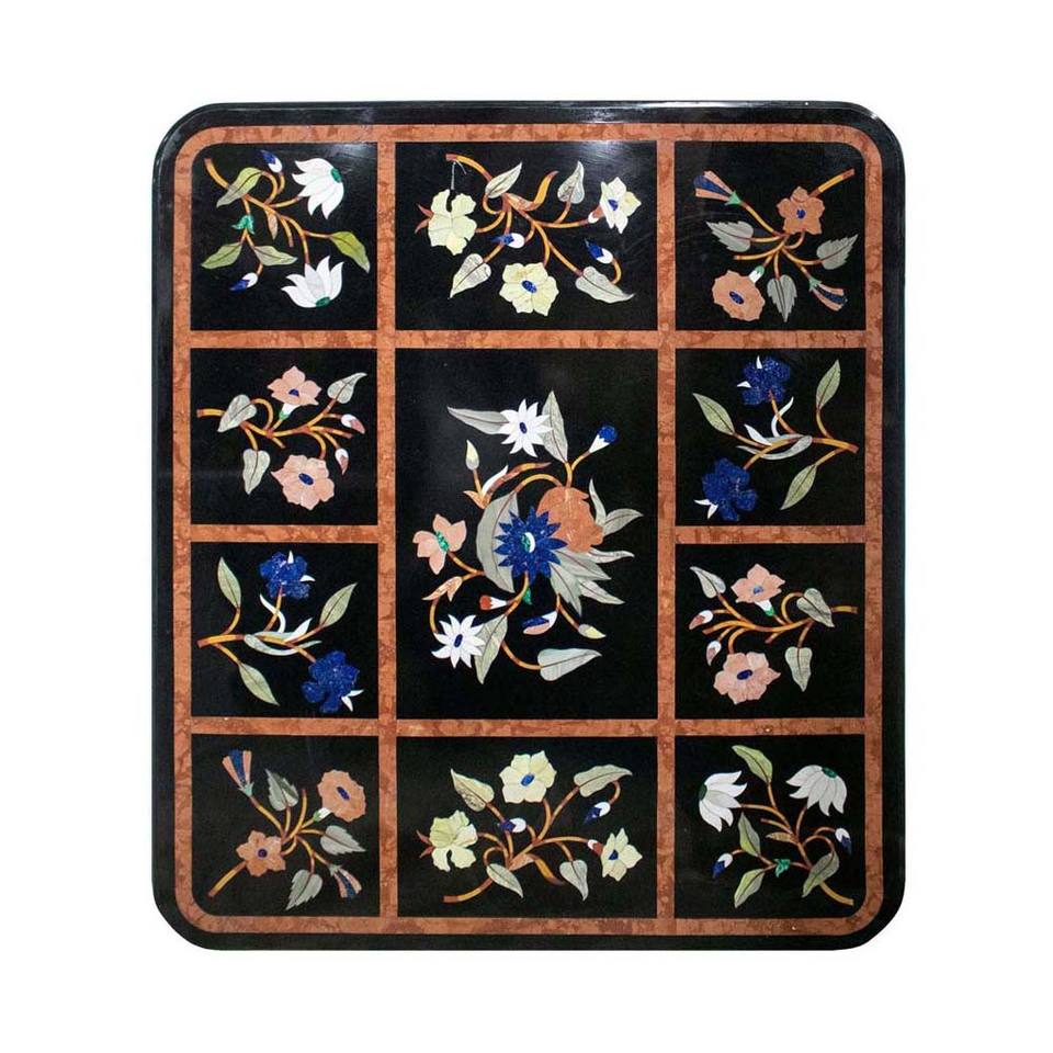 รุ่งโรจน์หินอ่อนสีดำดอกไม้ศิลปะการออกแบบตกแต่งโต๊ะกาแฟด้านบน