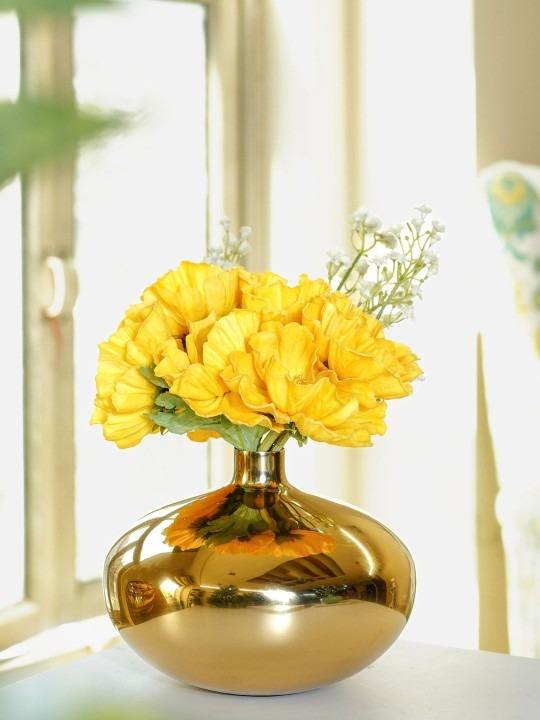 แจกันดอกไม้โลหะทรงกลมขัดเงาสีทองสวยงามอุปกรณ์ตกแต่งบ้านและห้อง