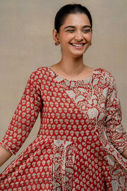 ชุดเดรสสำหรับผู้หญิงพิมพ์ลายปุ่มตระหง่านเดรสสไตล์ราชวงศ์พร้อมตะเข็บรังดุมที่คอและกระเป๋า