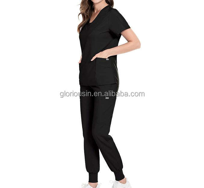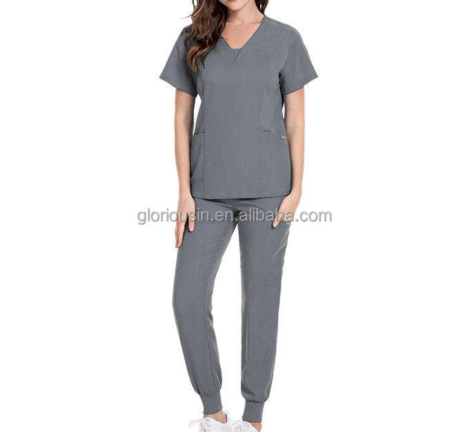 ชุดยูนิฟอร์ม GloriousIn RTS Scrubs 2023 สำหรับพนักงานร้านอาหาร แพทย์ และงานทำความสะอาด ผู้ชาย สีเทา ผ้าเนื้อยืด แบรนด์ดี ซิปคุณภาพ ลายปลาคาร์ฟ
