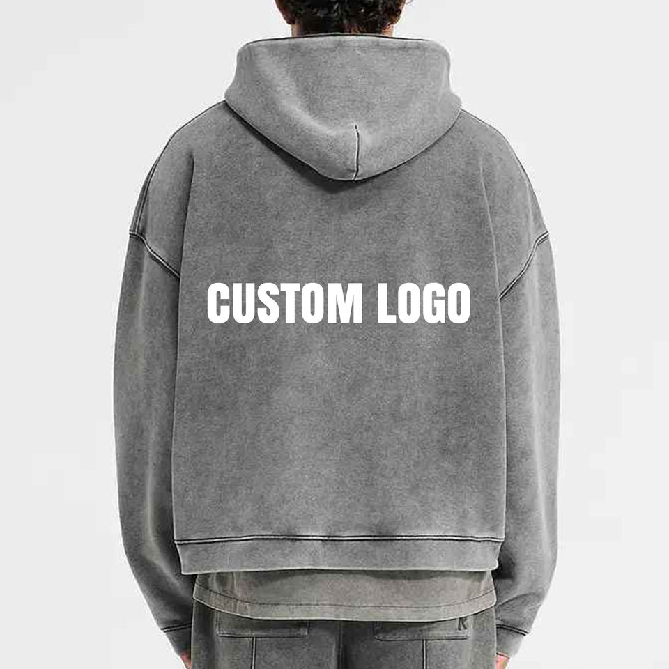 เสื้อฮู้ดดี้ Glory Custom 2026 สำหรับผู้ชาย พิมพ์โลโก้ตามสั่ง แบบสวมหัว สไตล์ลำลอง ผ้าฝ้ายฟลีซ 100% ทรงหลวม ไหล่ตก ล้างสีแบบ Acid Wash
