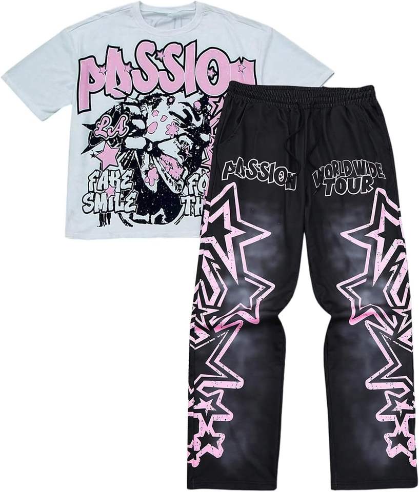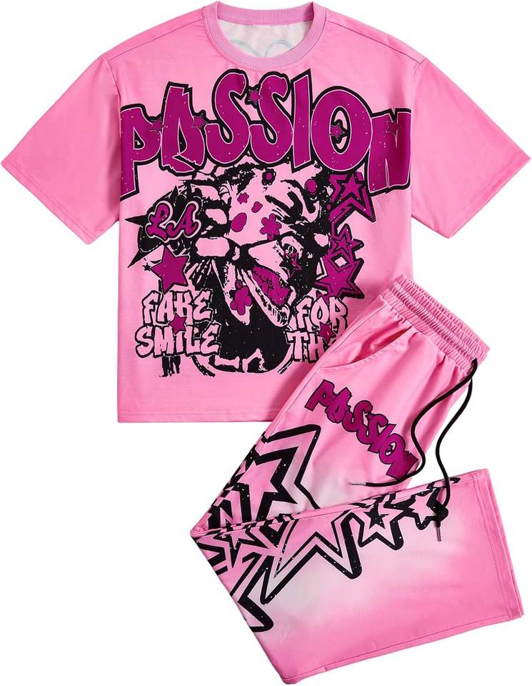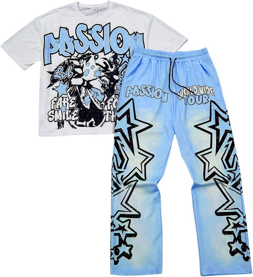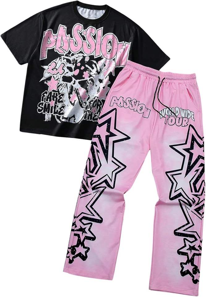 เสื้อยืดสตรีทแวร์ผู้ชายพร้อมกางเกงจ็อกเกอร์พิมพ์ลายไล่เฉดสี ชุดเซ็ต 2 ชิ้นทรงโอเวอร์ไซส์ พร้อมโลโก้ Glory Custom
