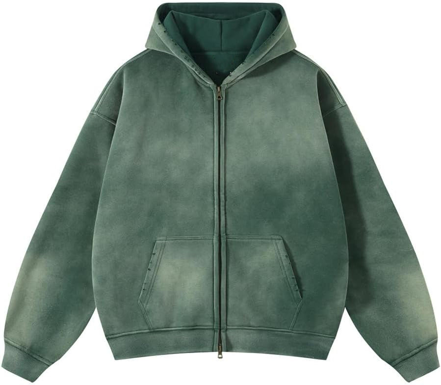เสื้อฮู้ดซิปพิมพ์โลโก้ Glory Custom แบบย้อมสีเอซิด คุณภาพสูง ผ้าฝ้ายฟลีซ 400GSM สำหรับใส่ลำลอง