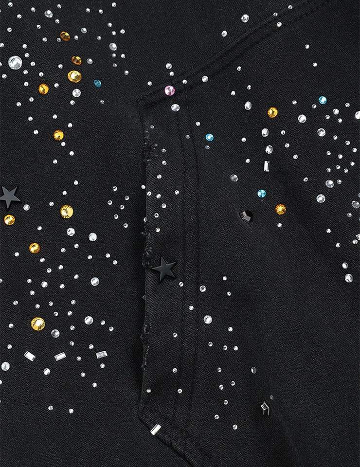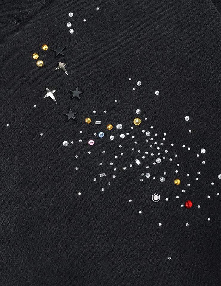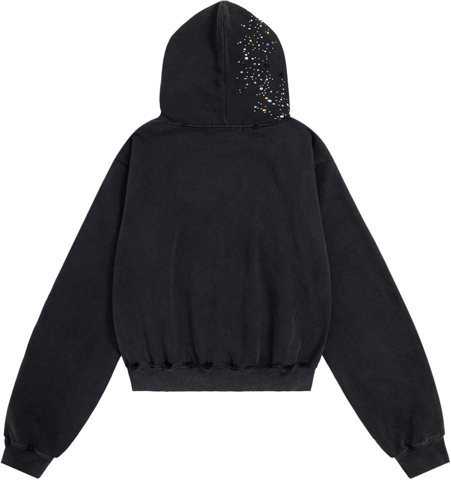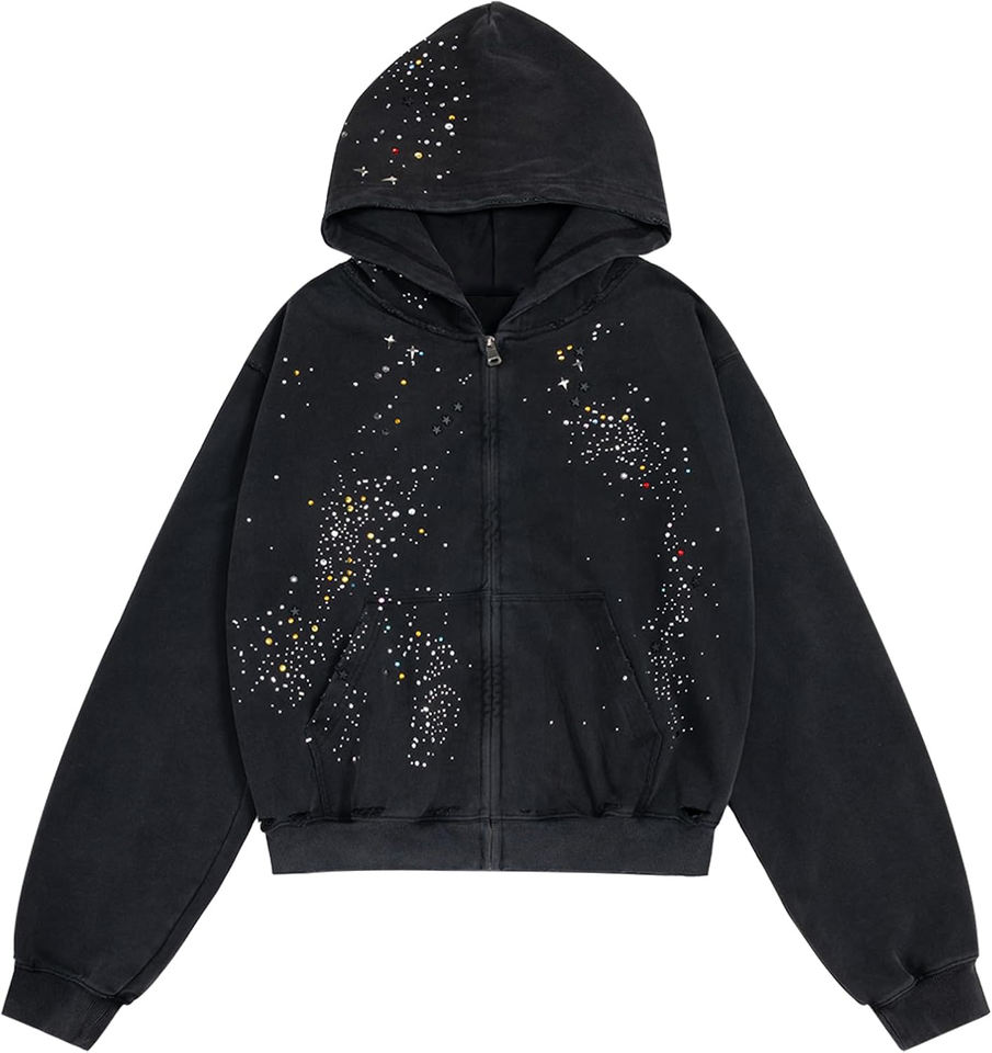 ผู้ผลิตเสื้อฮู้ดดี้ปักโลโก้แบบกำหนดเอง Glory ประดับคริสตัลรูปดาว ผ้าฟลีซคอตตอนหนา 360GSM ซิปแบบรูดขึ้นลง หรูหรา ประดับคริสตัลวิบวับ สำหรับทั้งชายและหญิง