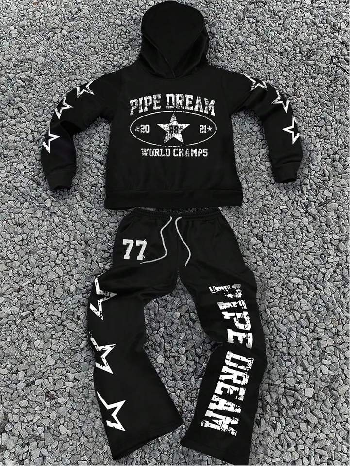 ชุดเสื้อฮู้ดและกางเกงวอร์มพิมพ์ลายสำหรับผู้ชาย Glory Custom ผ้าฝ้ายฟลีซ ชุดลำลองสำหรับเล่นกีฬา ชุด 2 ชิ้น