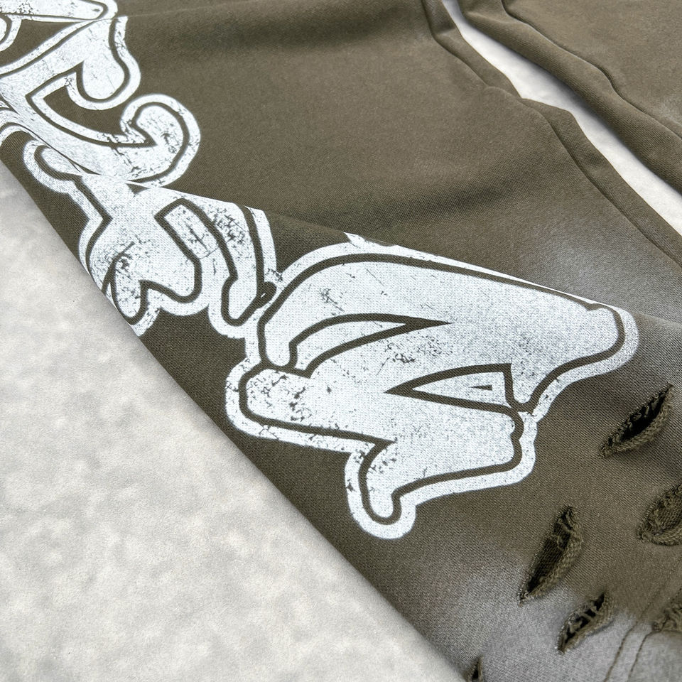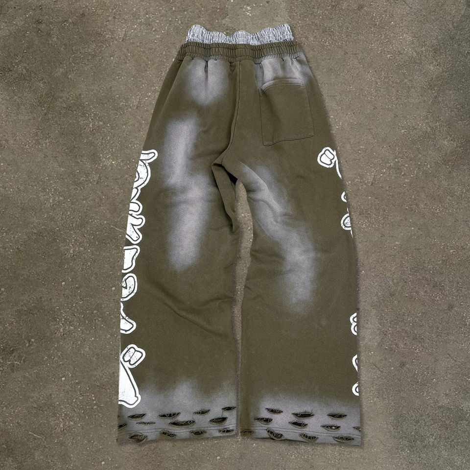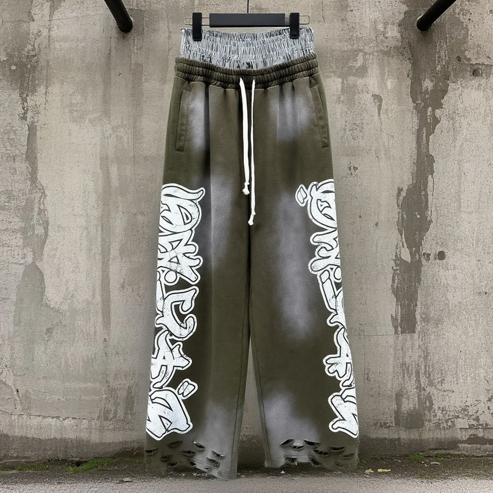 กางเกงวอร์มทรงจ็อกเกอร์พิมพ์ลายตามสั่ง Glory แบบซันเฟด เอวสองชั้น สไตล์สตรีทแวร์ ล้างสีแบบแอซิดวอช ทรงแบ็กกี้ สำหรับผู้ชาย
