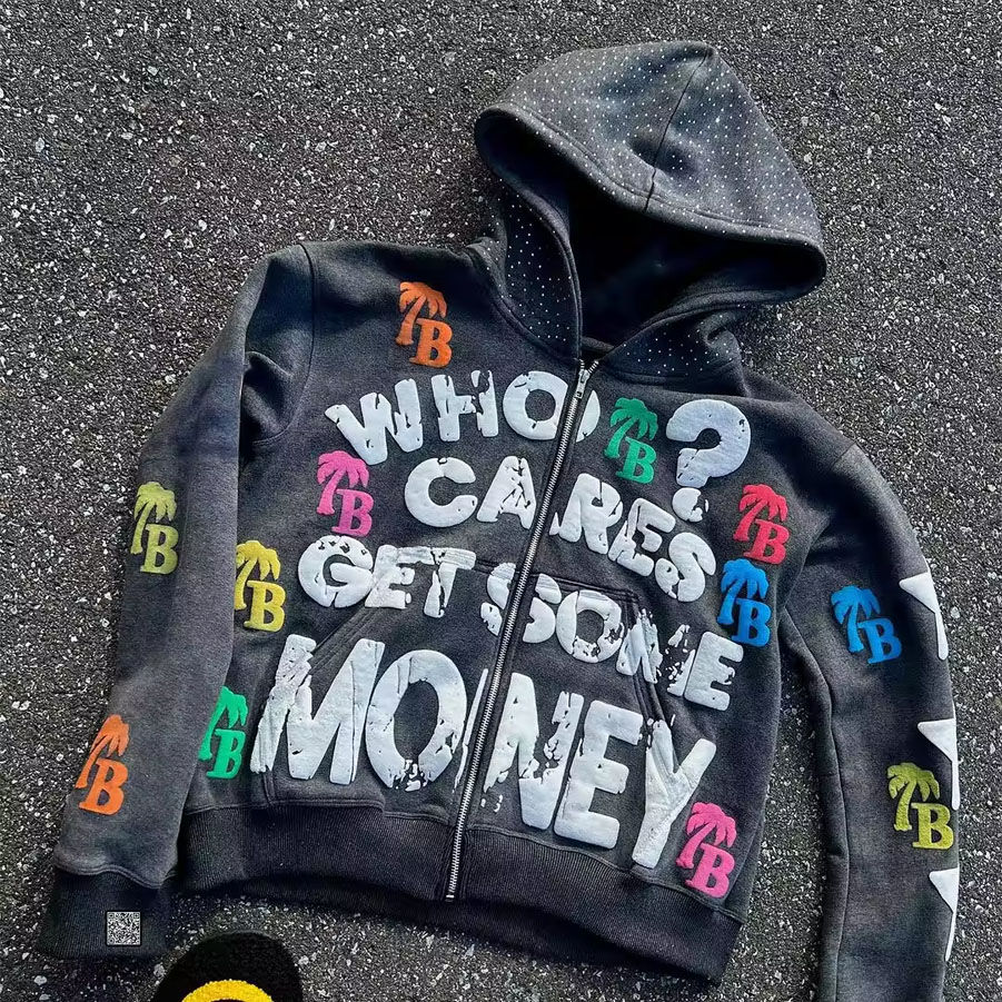 เสื้อฮู้ดดี้ครอปซิป Glory Custom ประดับเพชรเทียม ผ้าฝ้าย 100% ซักแล้ว พิมพ์ลายสกรีน สำหรับผู้ชาย สไตล์ฮิปฮอป ปี 2026