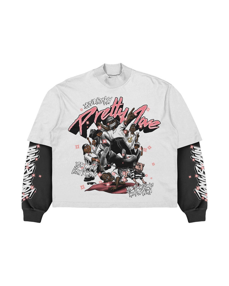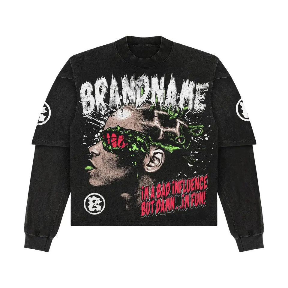 เสื้อยืดแขนยาวสองชั้นลายกราฟิกฮิปฮอปร็อคพิมพ์ลายตามสั่ง Glory Custom Screen Print