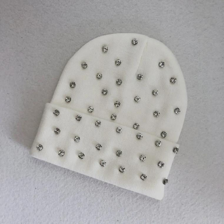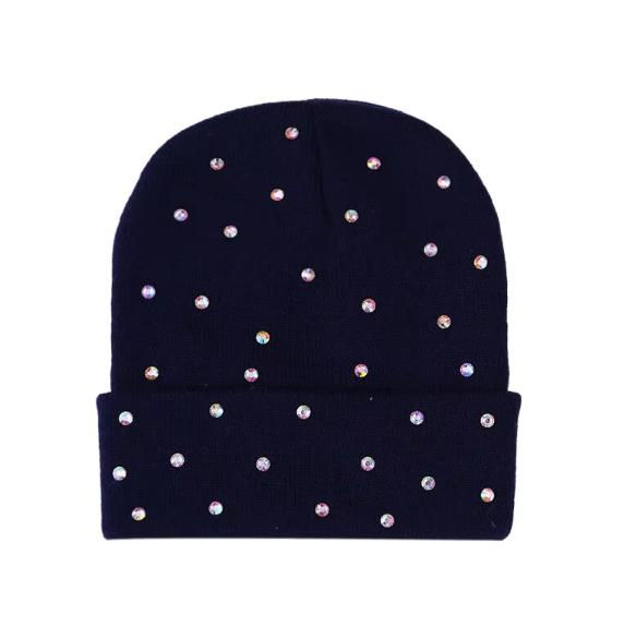 หมวกบีนนี่ถักแบบมีขอบสำหรับผู้หญิงและผู้ชาย ประดับด้วยคริสตัล ดีไซน์แฟชั่นใหม่ ผ้าคุณภาพดี พร้อม Mockup ฟรี