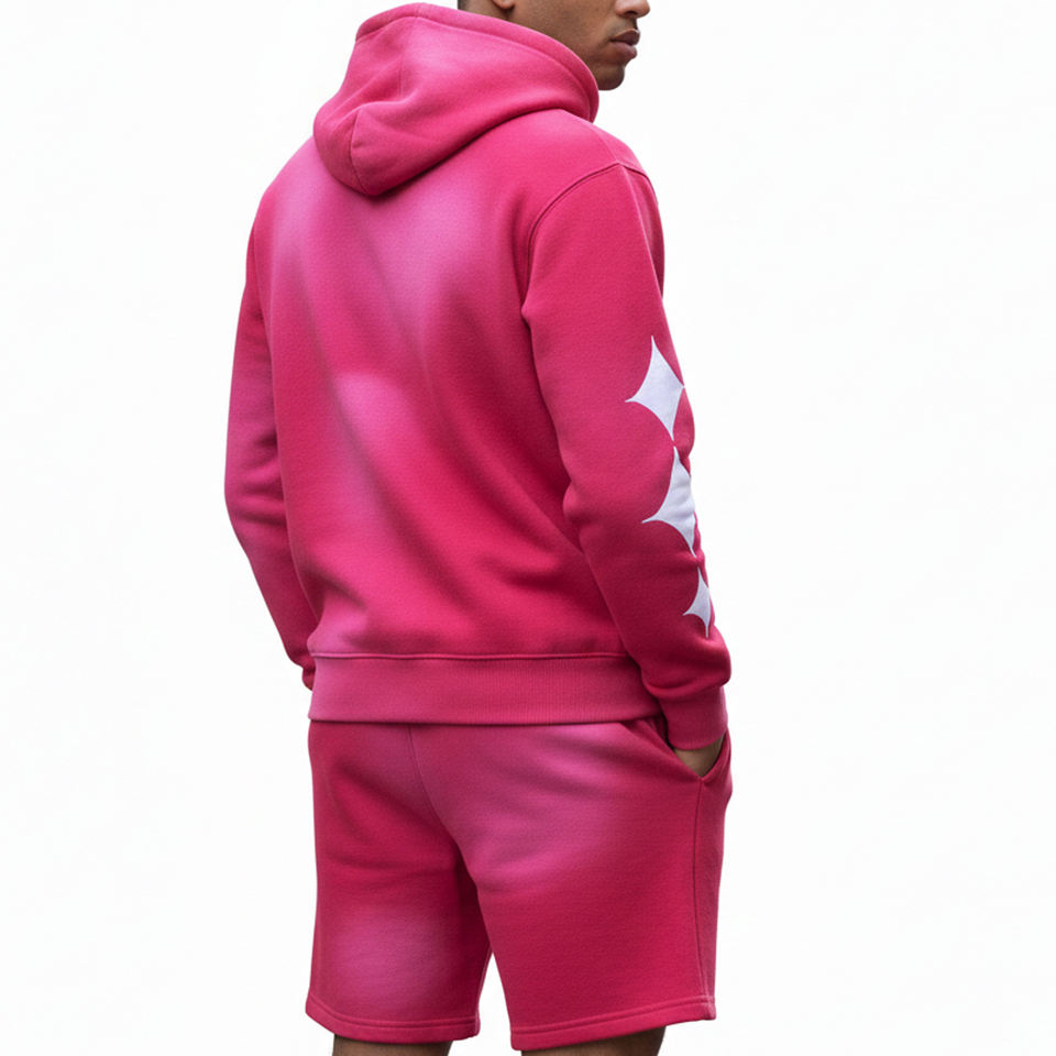 ชุดเซ็ตฮู้ดดี้และกางเกงขาสั้นคุณภาพสูง น้ำหนักปานกลาง ยี่ห้อ Glory Manufacturer ชุดวอร์มผู้ชายแบบสั่งทำพิเศษ พร้อมป้ายปักและเชือกผูกพิมพ์ลาย
