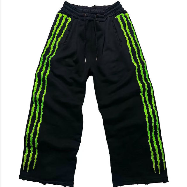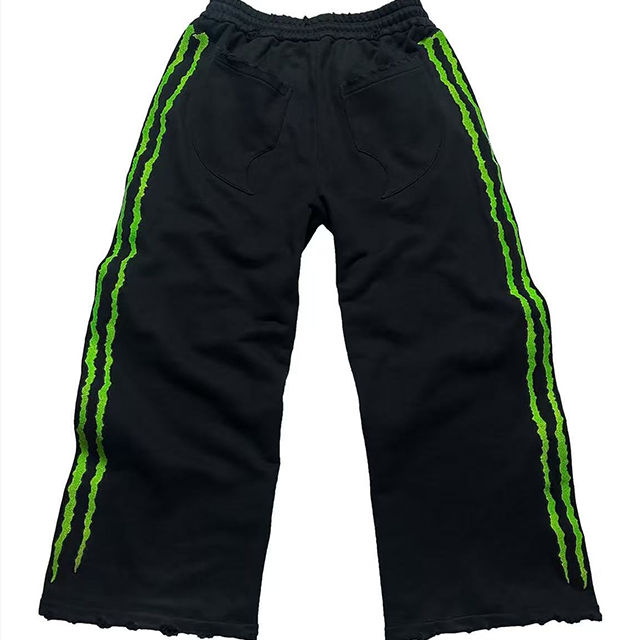 Glory Street Wear Casual EcoFriendly Breathable Lightweight Cotton Baggy Jogging Wide Leg Stacked Claw Triple Striped Drawstring