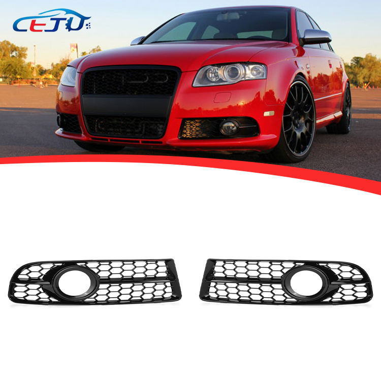 Glossy Black ABS Honeycomb Car Front Bumper Side Grills Grille Fog Lights Cover Caps for Audi A4 S Line S4 B7 8E 8H 2005-2007