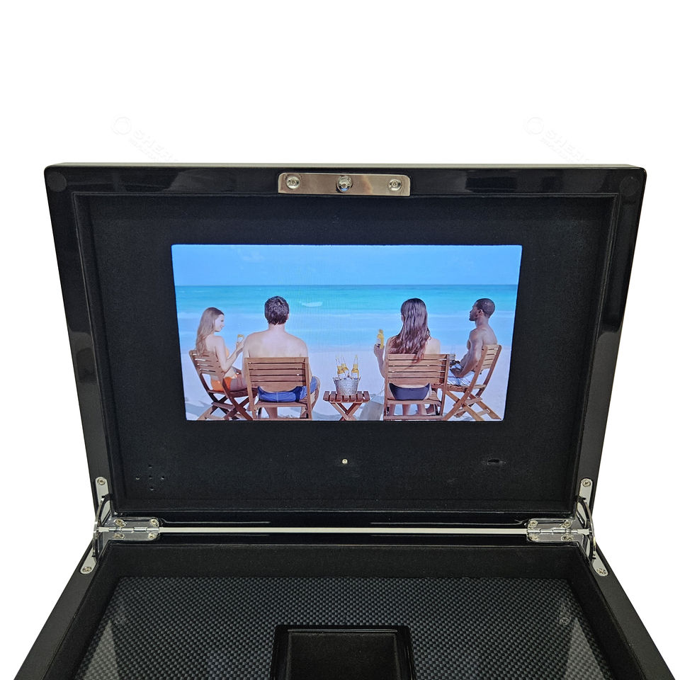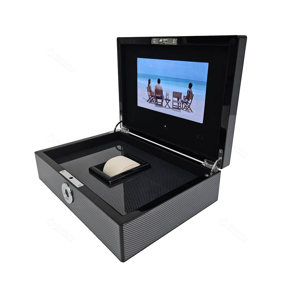 กล่องนาฬิกาสุดหรูสำหรับนักสะสมนาฬิกา ทำจากไม้เคลือบเงาสีดำ พร้อมฝาปิดแบบอินเทอร์แอคทีฟ