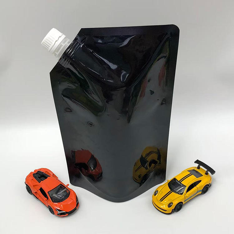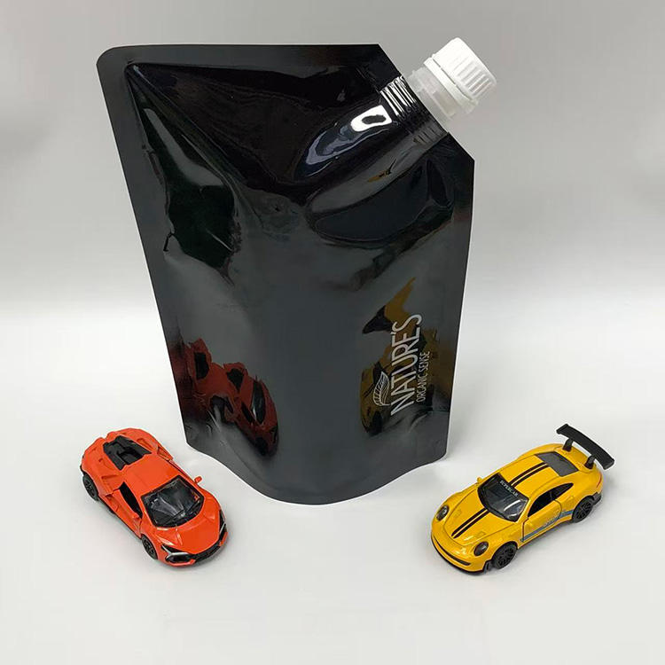 ถุงตั้งพลาสติก PE สีดำมันวาวพร้อมพวยถุงที่สามารถเปิดปิดได้และนำกลับมาใช้ใหม่ได้สำหรับสารเคมีกันน้ำสำหรับถุงเท้า