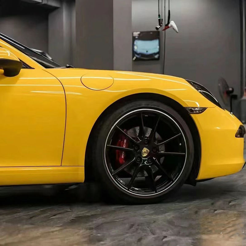 ฟิล์มหุ้มรถยนต์สีเหลืองดอกทานตะวันแบบมันเงา สติ๊กเกอร์ติดตัวถังรถยนต์ ฟิล์มไวนิลติดรถยนต์แบบมีกาวในตัว