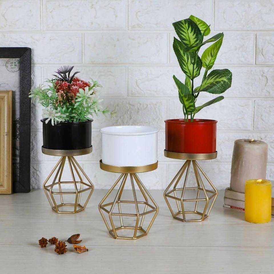 กระถางโลหะโทนสีคู่มันวาวพร้อมสีทองและสีเทาเหมาะสำหรับห้องนั่งเล่นโต๊ะหรือระเบียงในสวน