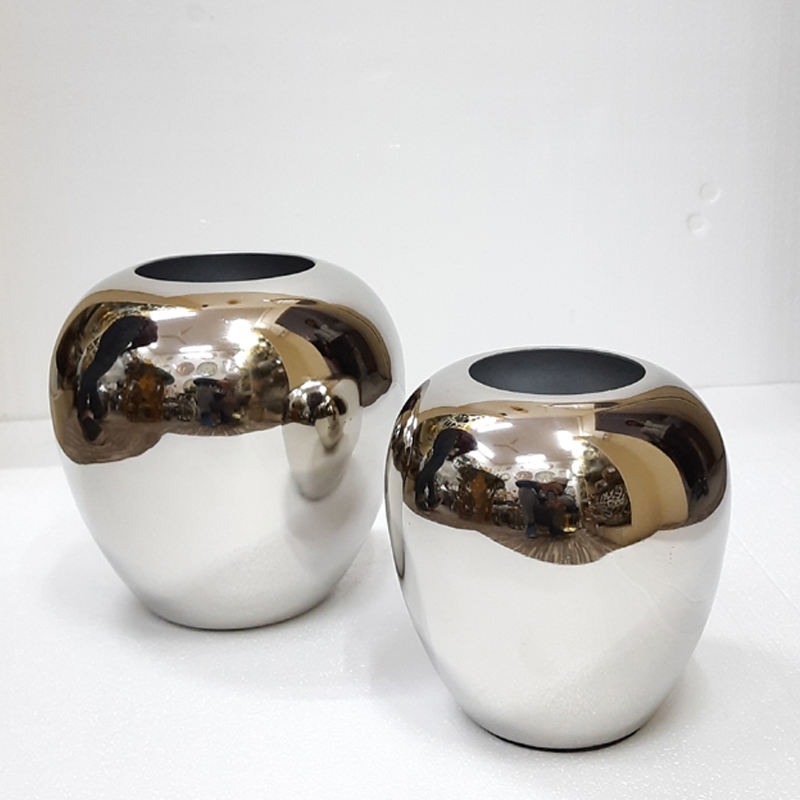 แจกันทรงกลมโลหะเงา ขัดเงา ดีไซน์ทันสมัย คุณภาพเยี่ยม ชุด 2 ใบ แจกันดอกไม้ตกแต่งบ้านสุดหรู