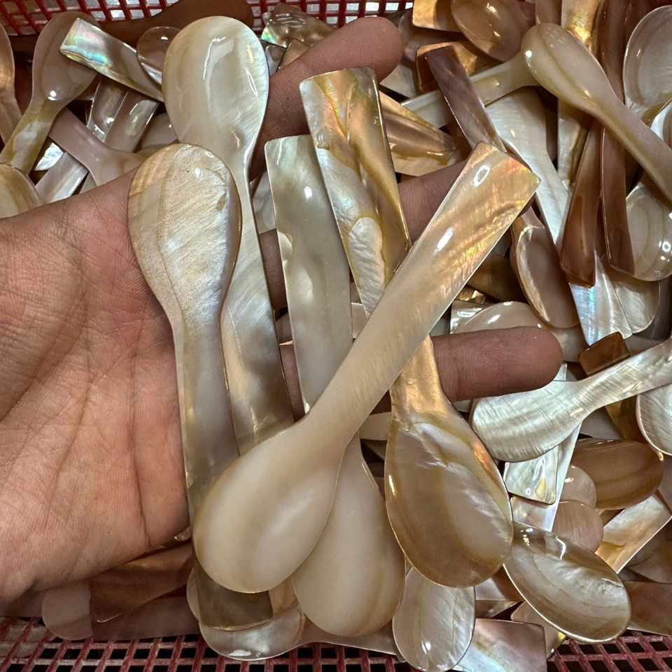 ช้อนมุกขัดเงาสไตล์โบฮีเมียน ของขวัญงานแต่งงานสำหรับอาหารคาเวียร์และอาหารหรูหรา ช้อนส้อมเปลือกหอยรักษ์โลก