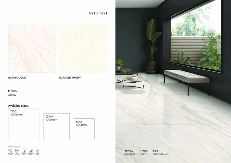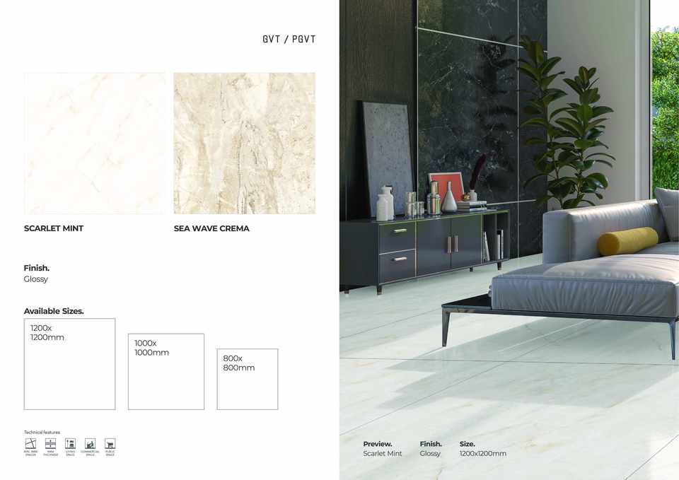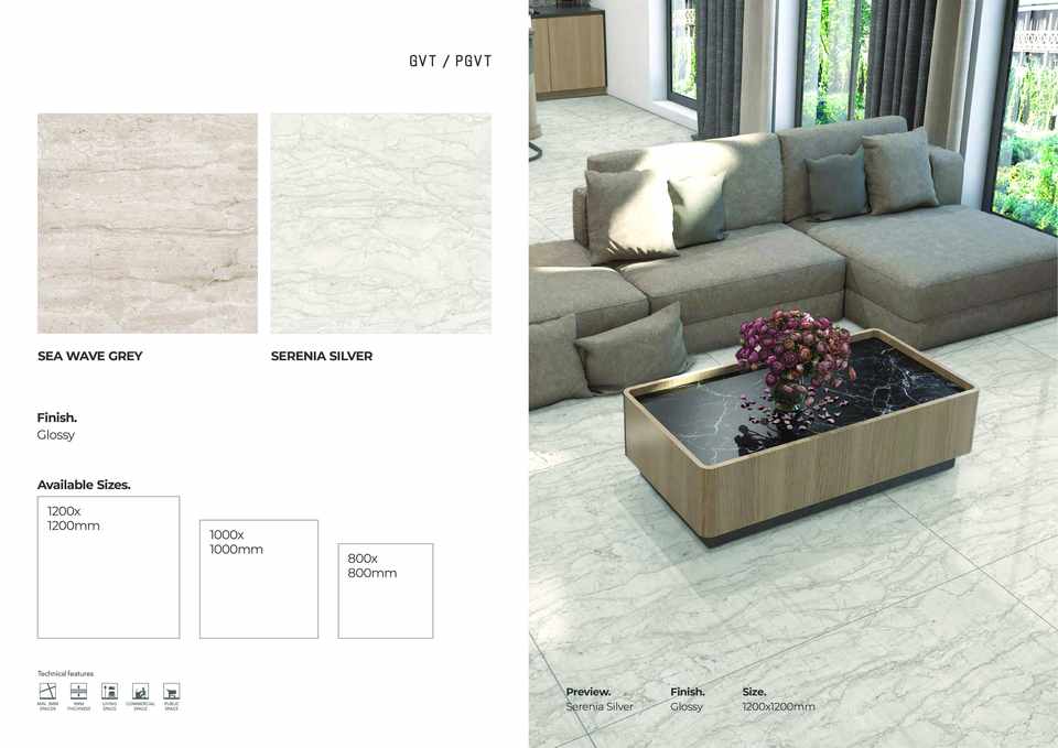 กระเบื้องปูพื้นพอร์ซเลนแบบมันเงา ขนาด 1200x1200 มม. แผ่นใหญ่ คุณภาพพรีเมียม