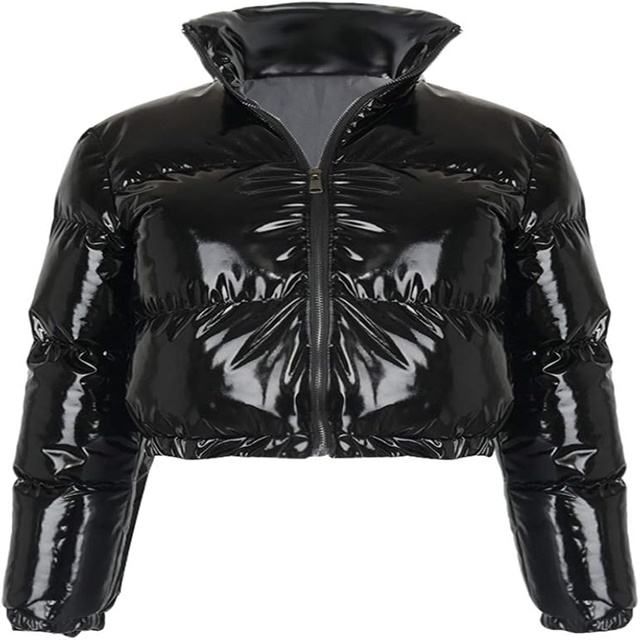 เสื้อแจ็คเก็ตพัฟเฟอร์แบบมันเงา _ คอลเลคชั่นใหม่ประจำปี 2026 สำหรับฤดูหนาว ให้ความอบอุ่น ซิปหน้ามันเงา พร้อมโลโก้ เสื้อแจ็คเก็ตพัฟเฟอร์แบบมันเงา