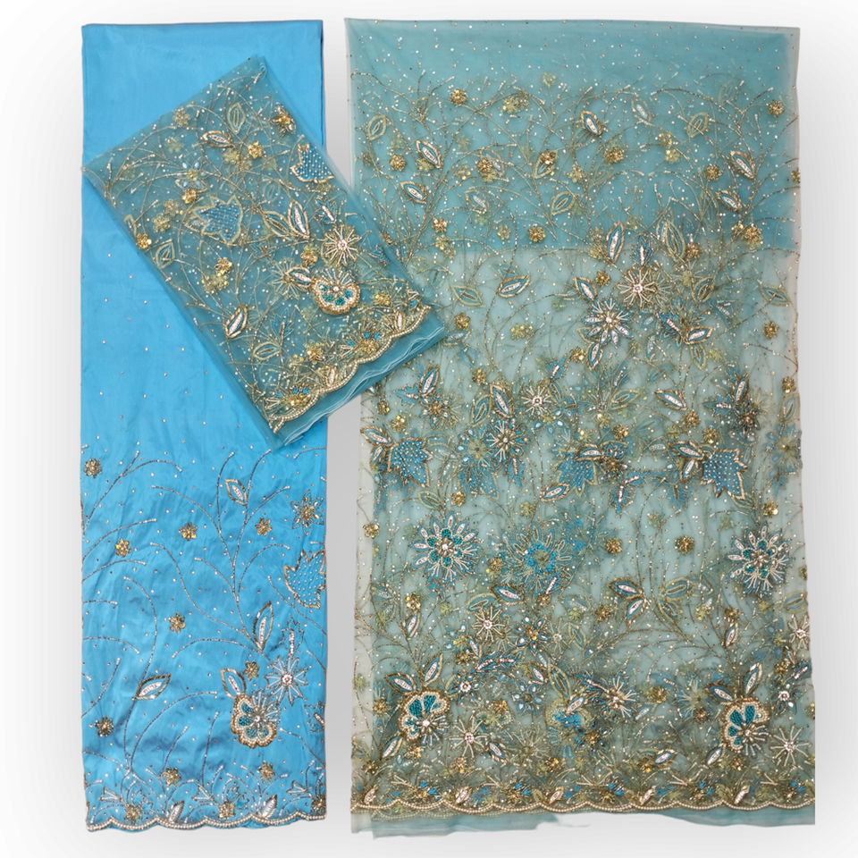 Feature:Heavy Beaded Net Lace + Silk Fabric