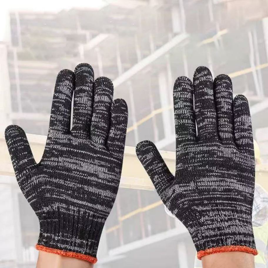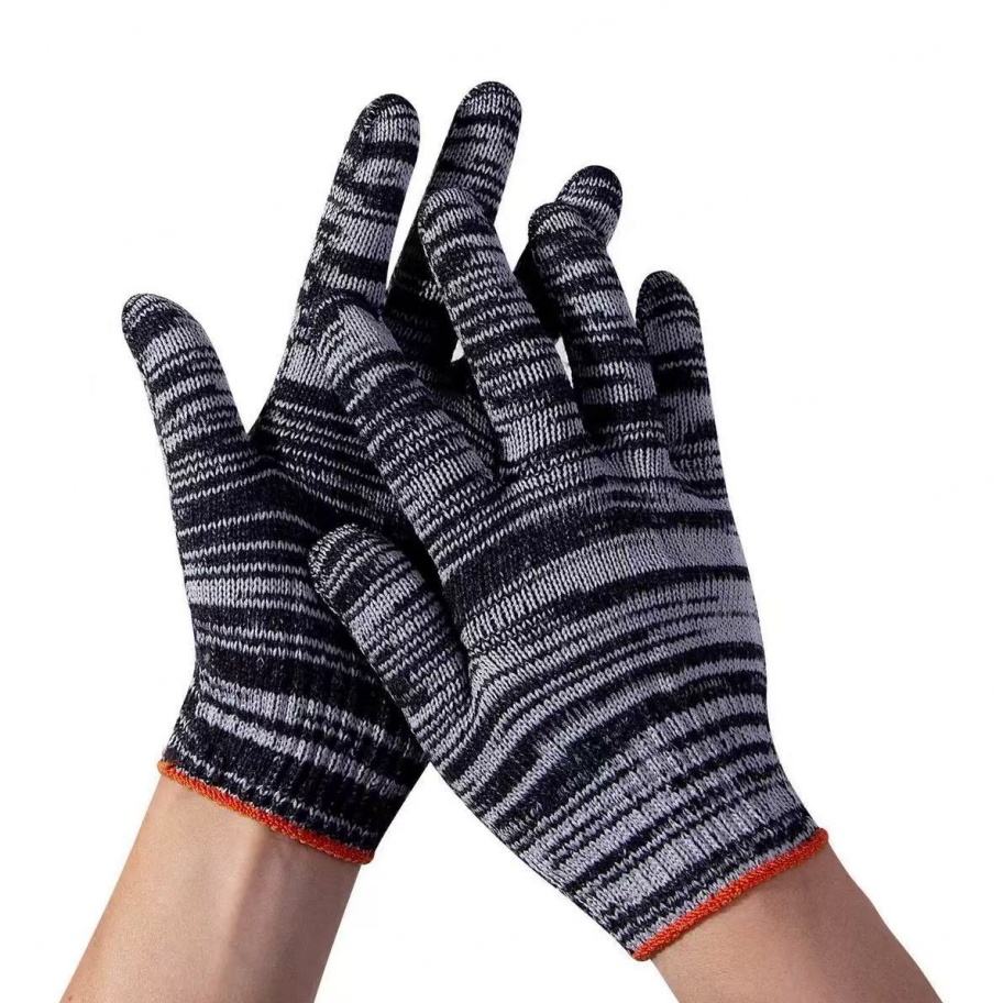 ถุงมือ ถุงมือนิรภัยกันลื่นพร้อมด้ายอุตสาหกรรมที่ทนทานต่อการสึกหรอ มีจำหน่ายในสีเทาและสีขาว