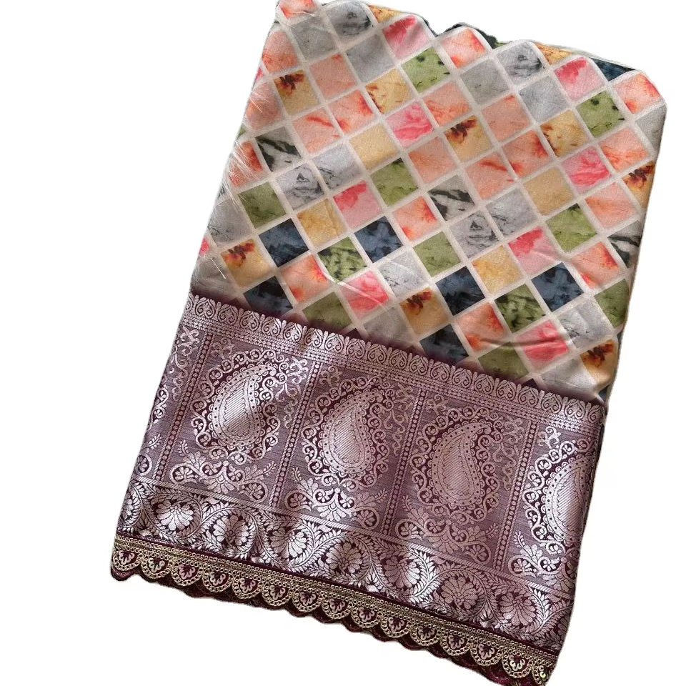 ผ้าโดลาผ้าไหมทัสซาร์ทัสซาร์นุ่มพิมพ์ลายดิจิตอลผ้าลาเทอร์ทำงานหลากสีใส่สบาย