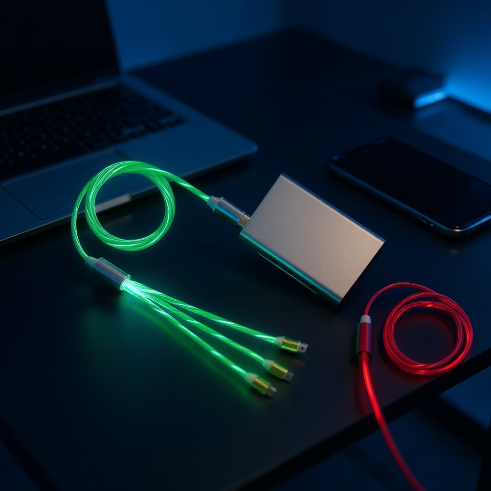 สาย USB เรืองแสงพร้อมหัวต่อหลายแบบสำหรับการชาร์จและการถ่ายโอนข้อมูล