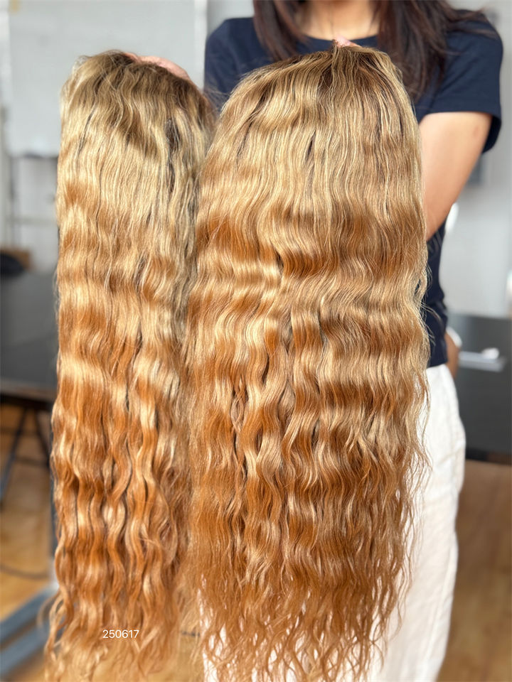 วิกผมคน13X6 HD ผมหยิกเปียกสีบลอนด์และสีน้ำตาลวิกผมบราซิลพรากจากกันทุกที่