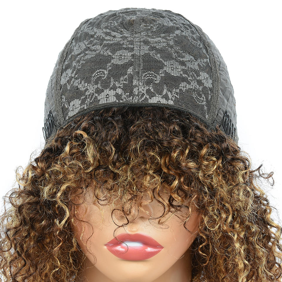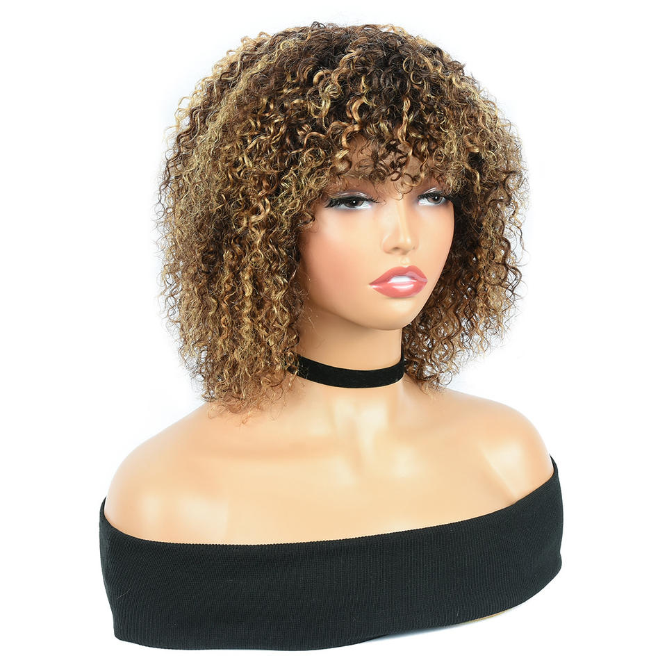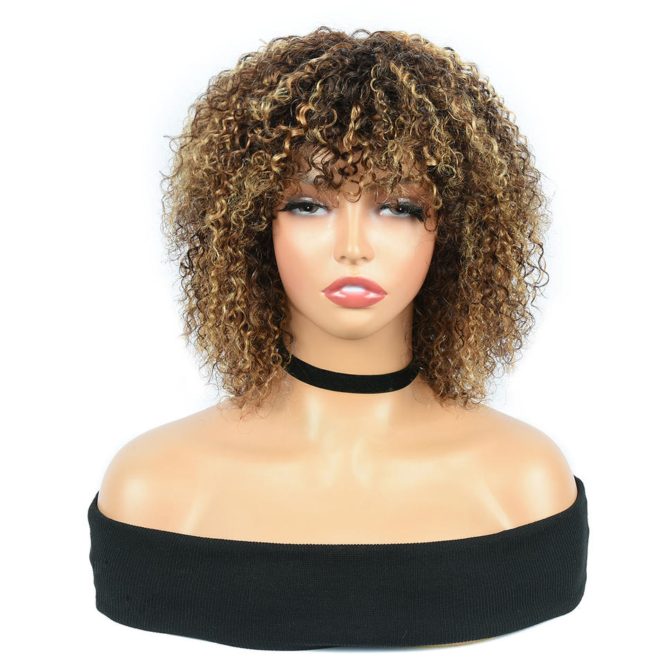 วิกผมแท้จากอินเดียแบบไม่ต้องใช้กาว ความหนาแน่น 180% ผมสั้นหยิกแบบแอฟโฟร ขนาด 10 นิ้ว ไฮไลท์สี P4/27 สำหรับผู้หญิงยุโรป ผมเวอร์จิ้น