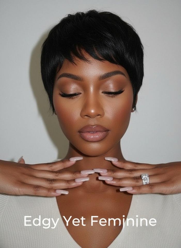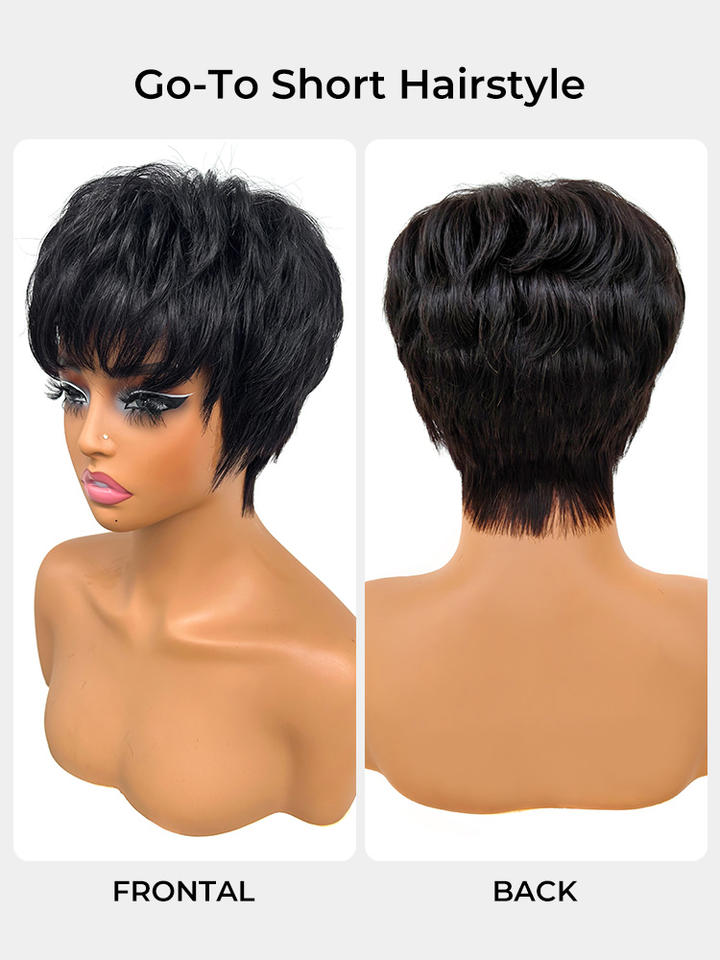 วิกผมทรงพิกซี่แบบไม่ต้องใช้กาว พร้อมหน้าม้า 13x4 วิกผมตรงสั้นจากผมแท้ พร้อมสวมใส่สำหรับผู้หญิง