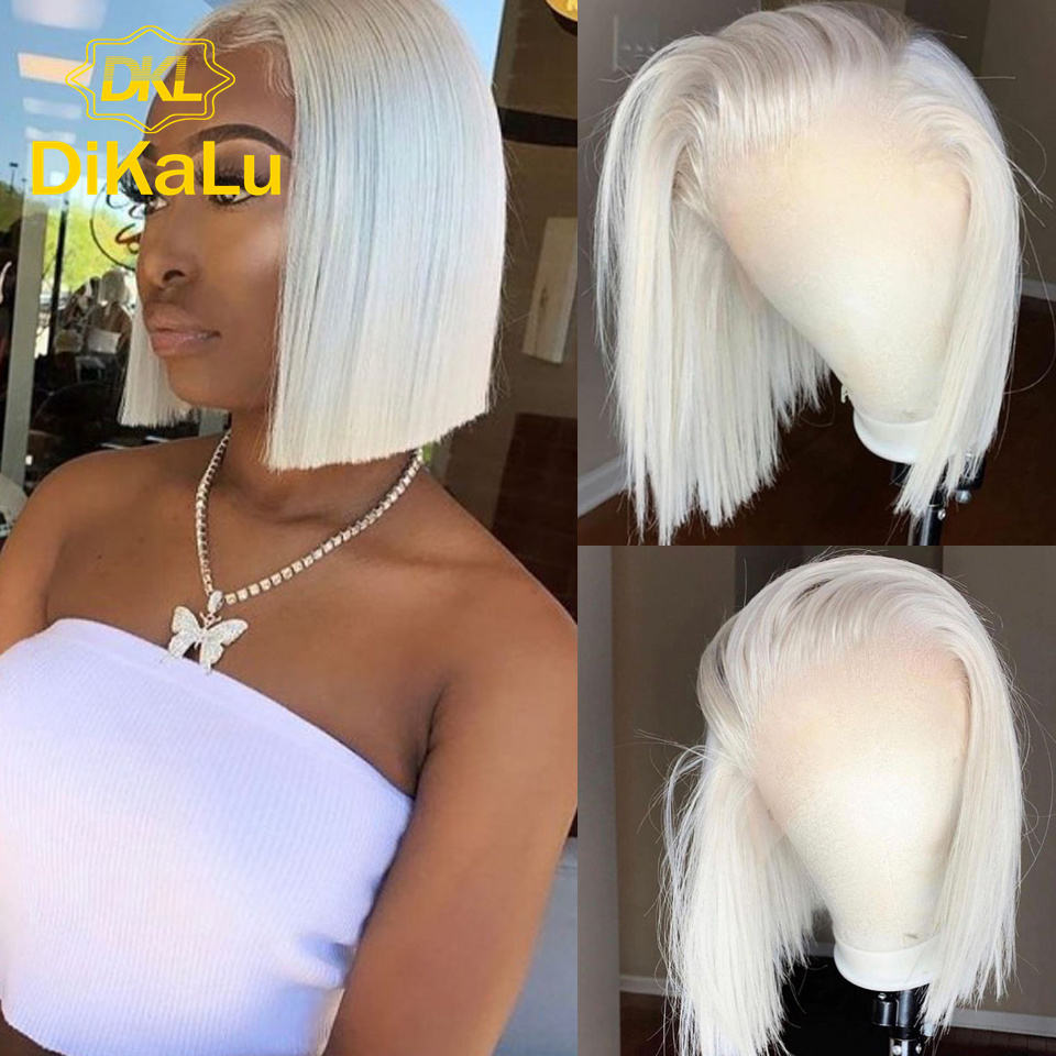 วิกผมสั้นบ๊อบ13x4แบบมีลูกไม้ด้านหน้าวิกผมมนุษย์สีขาว60สีวิกผมลูกไม้ใส