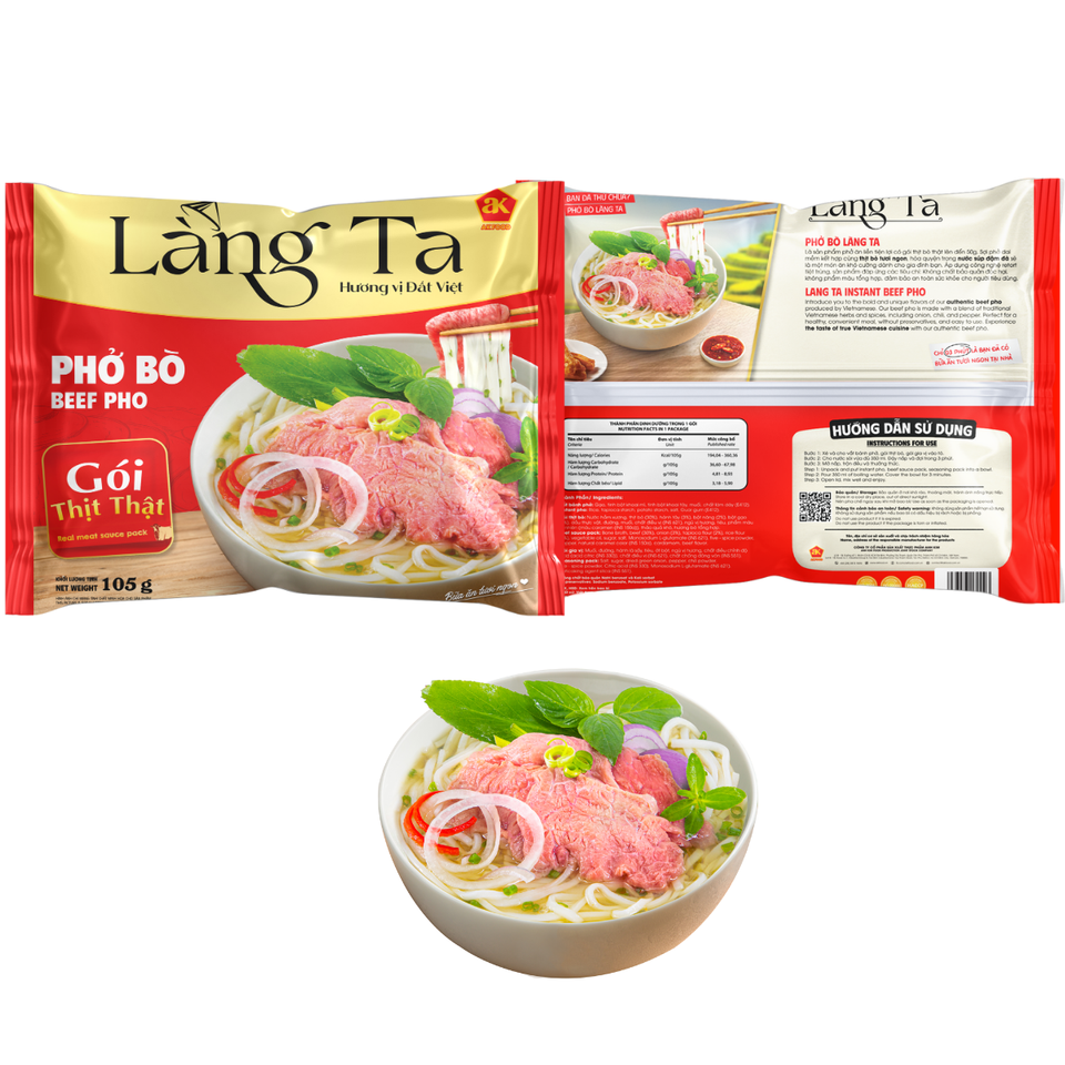 HACCP ได้รับการรับรองมาตรฐาน ISO โดยตรงจากโรงงานเวียดนามปราศจากกลูเตนเส้นบะหมี่เนื้อแท้ซอสเนื้อถุงแห้งทันทีสะดวก