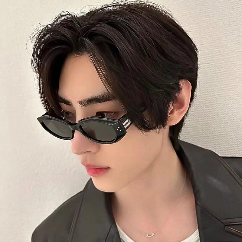 Gm แว่นกันแดดทรงแคทอายสำหรับผู้ชาย กรอบพีซีสีดำ เลนส์ Ac ป้องกันรังสียูวี 400 ประเภท 3 ที่บังแดด หมุดย้ำลายจุด สไตล์สตรีท