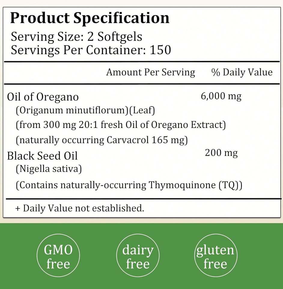 สารออกฤทธิ์:น้ำมันออริกาโน (50-80% carvacrol)